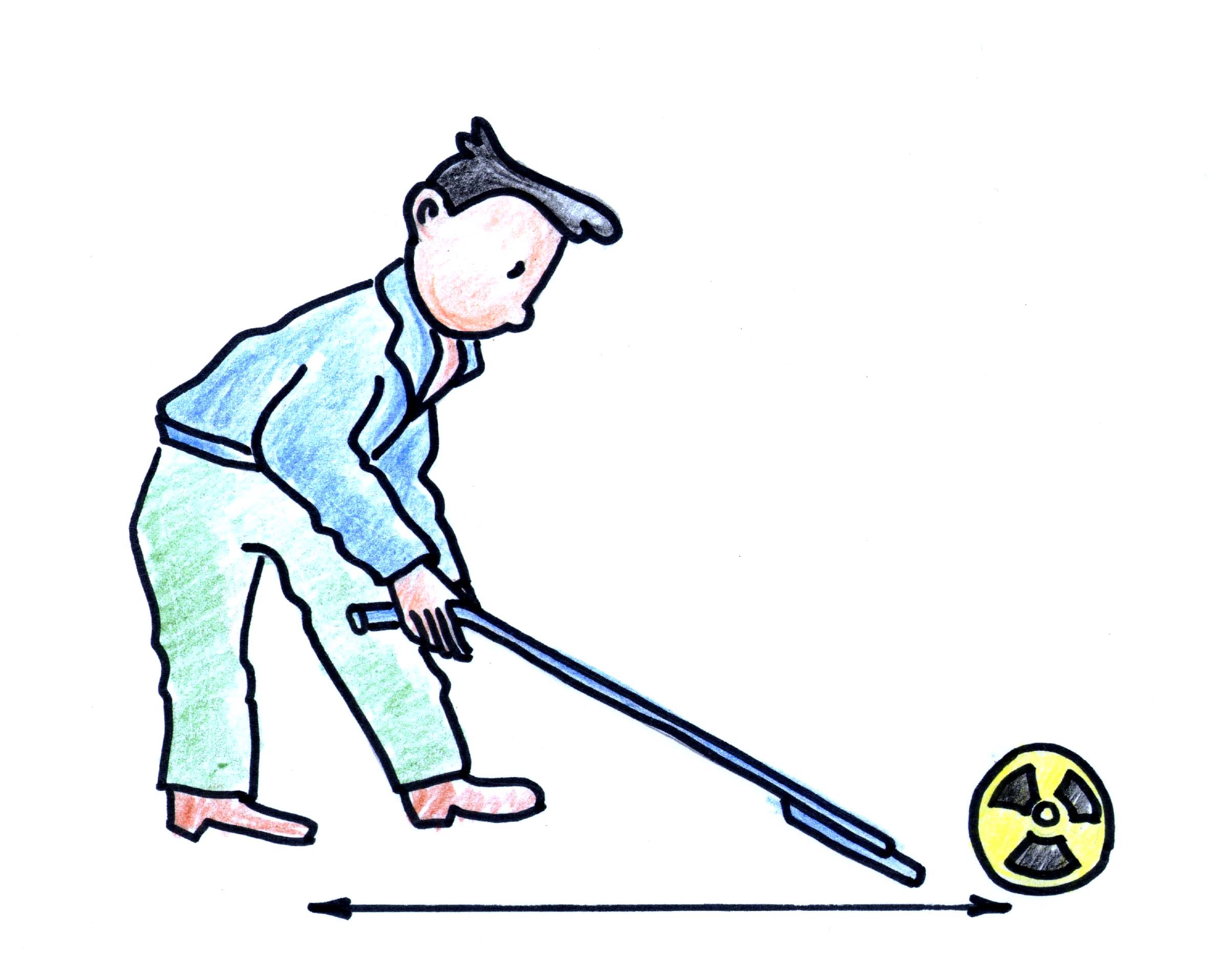 实验证明,点状源所致照射量率与离源距离平方成反比,也就是说,距离增加一倍,照射量率则降为原来的四分之一。因此,离源越远,照射量率越低,在相同时间内受到的照射量也越少。在实际工作中,常用长柄钳子、机械等远距离操作工具,远距离自动控制装置等,以增大人体与辐射源之间的距离。