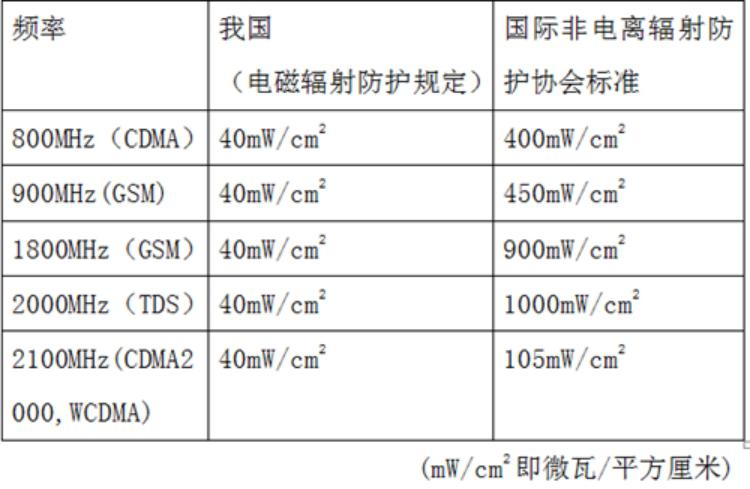 我国移动通信基站辐射标准