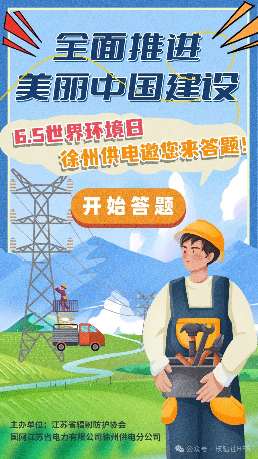 小伙伴们知道吗?今年的“六·五”是第53个“世界环境日”。江苏省辐射防护协会联合国网江苏省电力有限公司徐州供电分公司精心组织了线上答题活动,也为大家准备了的红包奖励!为了让小伙伴们能更好参与这次活动中,辐蛙社长特别奉上答题攻略:小伙伴们可关注“核辐社HFS”微信公众号,学习【六·五知识题库】。
