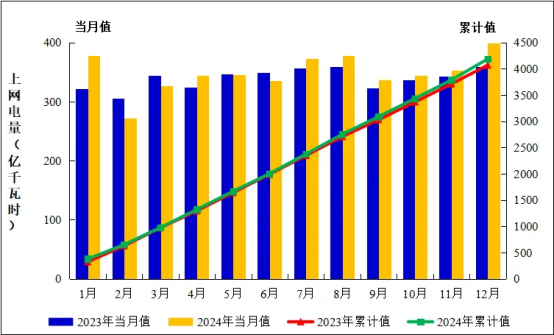 图3:2023年1月至2024年12月全国运行核电机组上网电量趋势