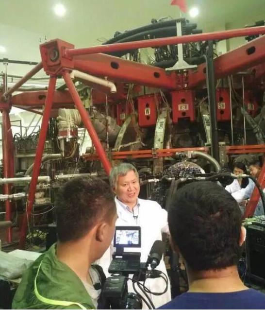 后面像“八爪鱼”一样的机器,是用来模拟太阳上发生的核聚变设备——中国环流器二号A装置。