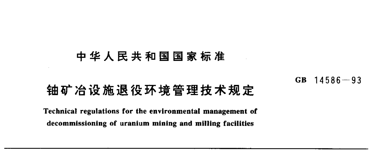 铀矿冶设施退役环境管理技术规定 GB 14586-1993