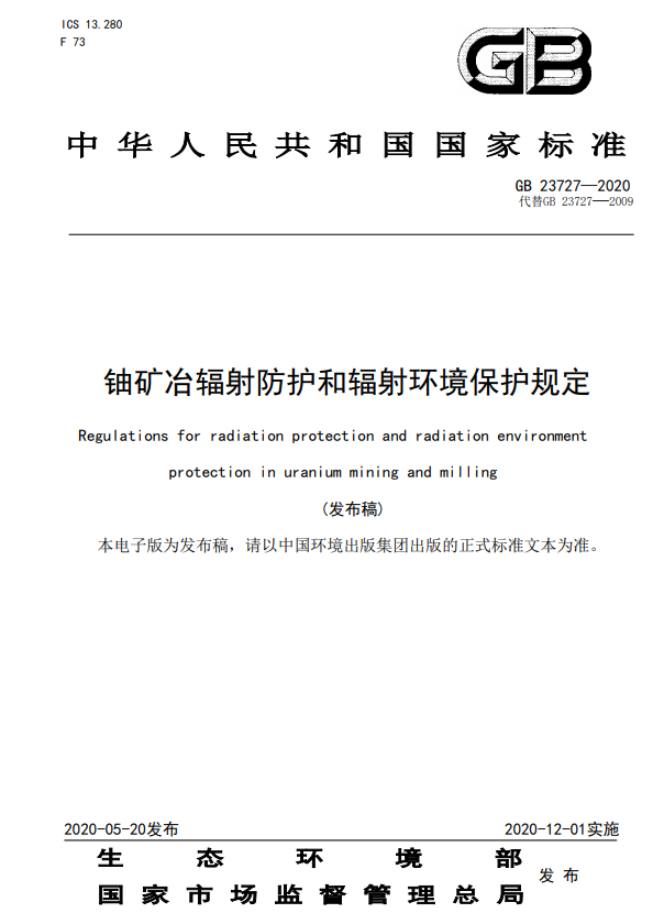 原文下载:铀矿冶辐射防护和辐射环境保护规定 GB 23727-2020