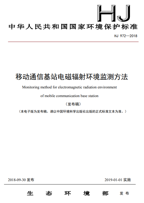 原文下载:移动通信基站电磁辐射环境监测方法 HJ 969-2018