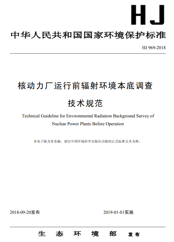 原文下载:核电厂运行前辐射环境本底调查技术规范 HJ 969-2018