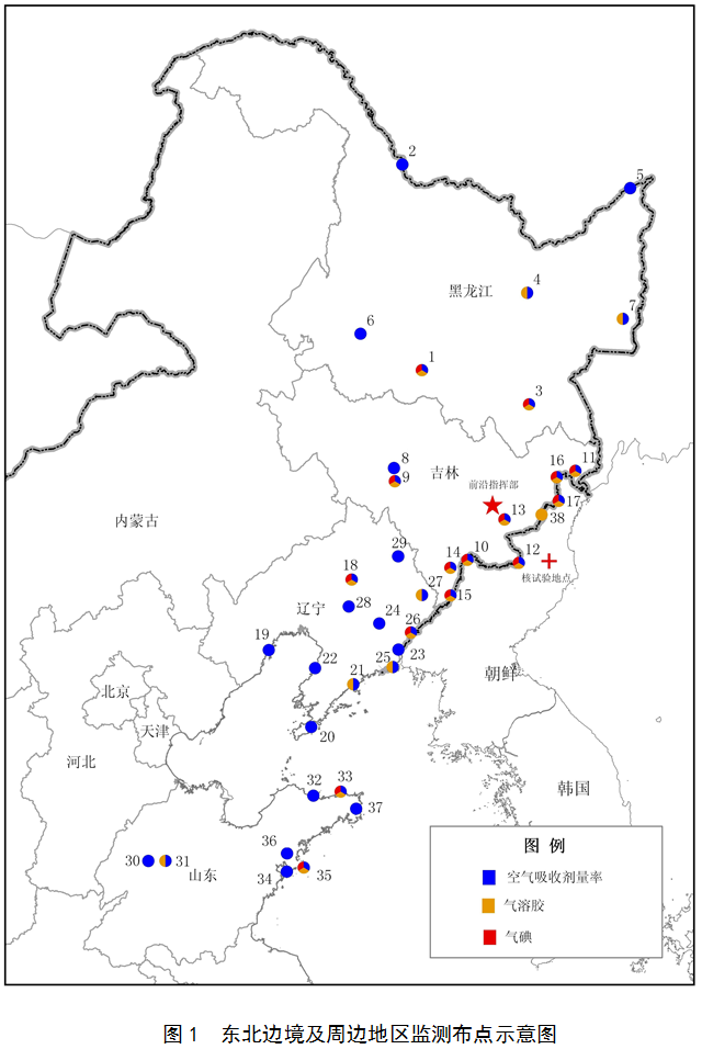 监测结果表明,朝鲜第五次核试验目前未对我国环境和公众造成影响。监测布点示意图见图1。监测数据见表1~表4。